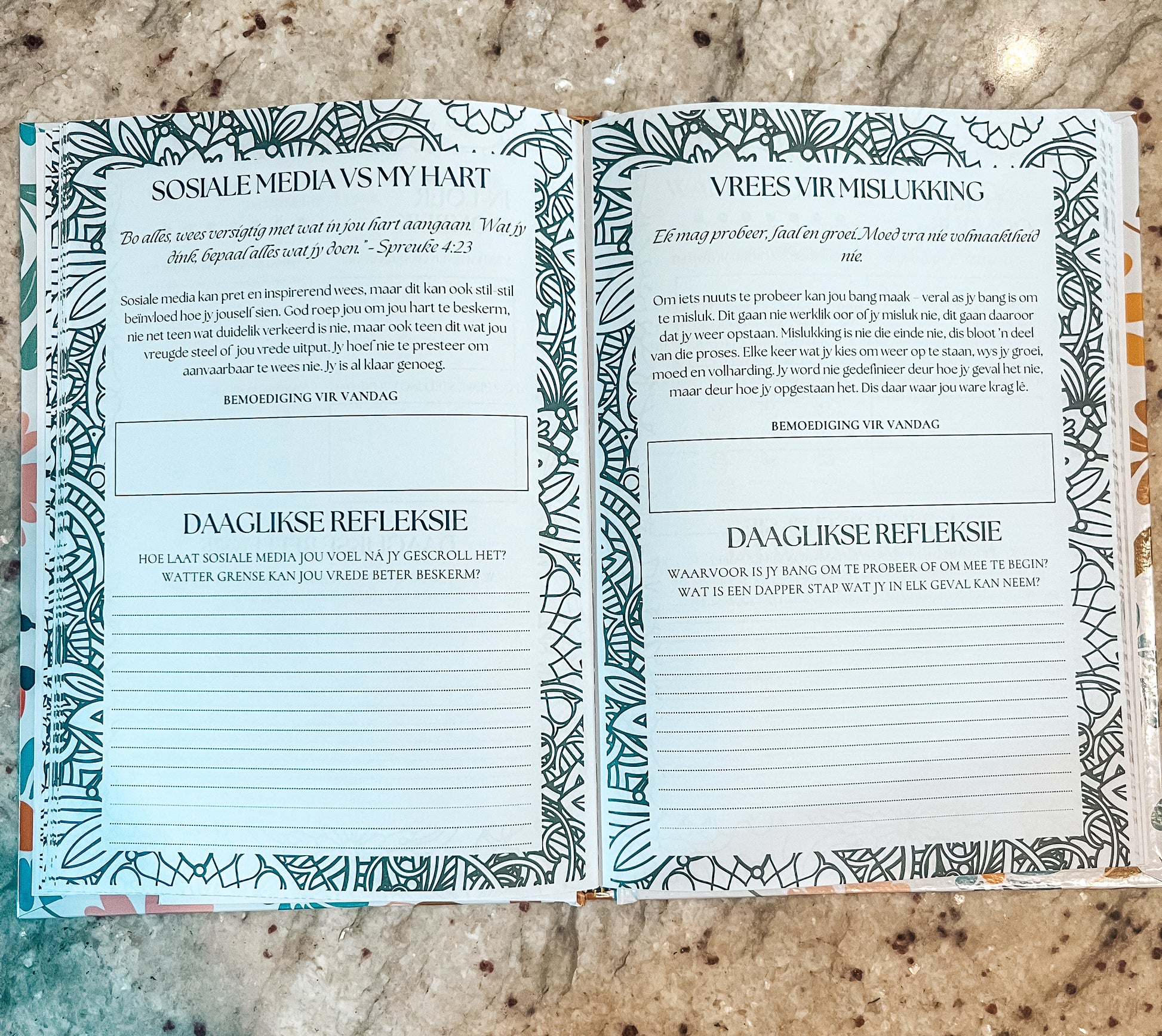 Of jy deur ‘n moeilike tyd stap of net jou verhouding met God wil verdiep, hierdie joernaal help jou om stadig, diep en opreg te blom – van binne af.